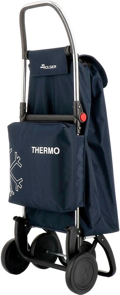 Сумка-тележка Rolser I-Max Termo Zen 4L Marino (IMX353-1001) - надежный помощник при походе за продуктами в супермаркет или на рынок. Особенностью данной модели является наличие термокармана на четыре литра для замороженных продуктов или охлажденных напитков. Алюминиевая конструкция тележки позволяет транспортировать груз максимальным весом до 40 кг. Рама 4L имеет систему для полной сборки, а также оснащена адаптером для соединения с тележкой супермаркета. Раскладная основа выполнена из алюминия, а опора – из прочного термостойкого пластика. Дополнительная пара колес для удобного использования тележки перед собой. Внутренняя часть рукоятки имеет пластиковое покрытие для комфортной транспортировки сумки-тележки в холодное время года. Прочный полиэфирный материал сумки защитит содержимое от дождя и снега. Съемная сумка имеет удобную широкую горловину, которая стягивается шнуром с фиксатором. Верх сумки покрыт защитным клапаном. На дне сумки предусмотрено вставное дно из пластика.