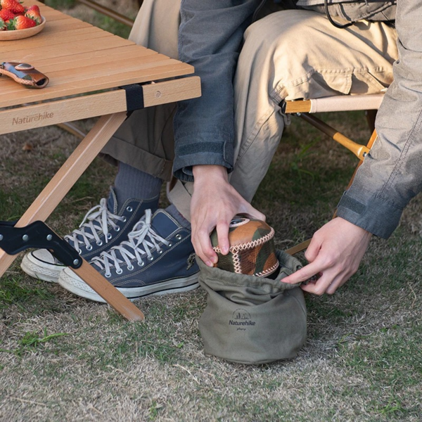 Фирменная сумка от Naturehike предназначена для хранения и транспортировки мелкого туристического инвентаря, например, фонаря или баллона для горелки, а также другого кемпингового снаряжения. Благодаря высокой плотности холщовой ткани, из которой пошит аксессуар, вещи, хранящиеся внутри, защищены от механических повреждений во время ношения в рюкзаке вместе с другим инвентарем. Материал также обладает водоотталкивающими свойствами.