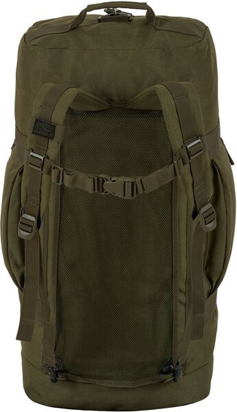 Сумка дорожная Highlander Loader 100 Holdall предназначена для длительных и сложных поездок, позволяет транспортировать большое количество багажа четырьмя способами: за спиной как рюкзак, на одном плече, в руках за верхние или за боковые ручки. Плотная ткань с полиуретановым покрытием защищает вещи от повреждений и намокания. Верхние ручки охватывают сумку по всему периметру, наплечные лямки прячутся в специальное отделение на молнии, наплечный ремень регулируется по длине. Компрессионные стропы позволяют уменьшить объем упакованной сумки.