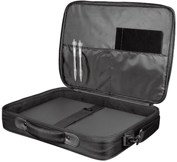 Отделения с мягкой обивкой защищают ноутбук и ваши вещи от повреждений. А благодаря металлическим молниям и застежкам-липучкам ваш надежный ноутбук остается в безопасности, когда вы переезжаете с места на место. Носите ноутбук за ручной ремень этой сумки для ноутбука или просто используйте регулируемый плечевой ремень, который входит в комплект. Большинство ноутбуков с диагональю до 15,6 дюйма удобно помещаются в Trust Atlanta.