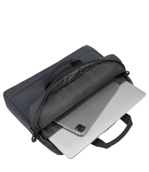 Компактная и легкая сумка для ноутбука 14" и MacBook Pro 14", изготовленная из переработанного пластика. Оснащенная удобным центральным отделением, сумка Stop имеет внутренний карман для ноутбука и внешний карман для аксессуаров спереди. Оснащен ремнем для крепления к тележке и съемным плечевым ремнем.