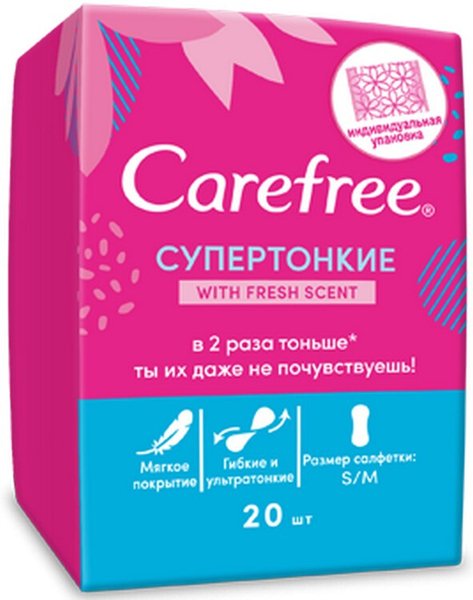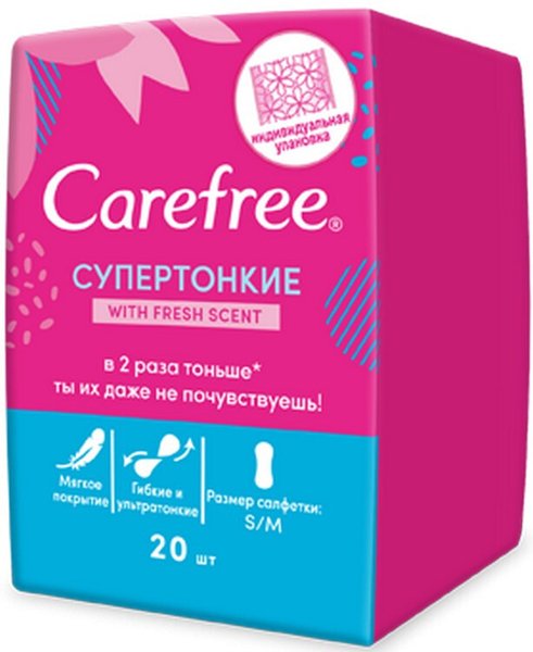 - СуперТонкие ежедневные прокладки Carefree with Fresh scent в упаковках 20 шт