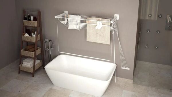 Сушилка для белья настенная Colombo Sali E Stendi 120 - это практичное решение, которое позволит сэкономить пространство и облегчит домашние хлопоты. Благодаря веревочному механизму рабочие стержни легко опустить и развесить одежду. Для защиты напольных кровель от влаги с одежды, данную модель можно разместить над ванной. Все металлические элементы обработаны антикоррозийным покрытием, что значительно продлевает срок эксплуатации.