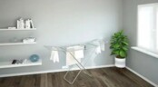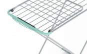Общая длина струн сушилки составляет двадцать метров, что позволяет одновременно высушить большое количество белья. На крайних струнах откидных секций удобно сушить длинное белье. Максимальная нагрузка в девять килограммов. Напольная сушилка для белья проста в использовании и занимает мало места в сложенном состоянии.