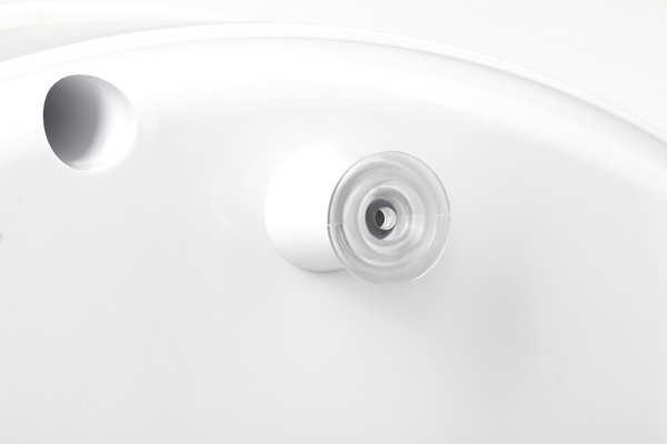 Устройство в белом цвете состоит из основного блока, пяти поддонов-решеток, а также крышки с отверстием для воздуха. Отверстие поможет следить за состоянием продуктов. Диаметр поддонов — 38.5 см, а высота каждого составляет 4 см. Управление — механическое, для включения и регулировки мощности есть рычаг. Надежную установку обеспечивают прорезиненные ножки.