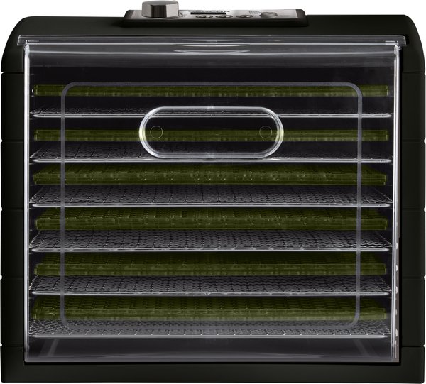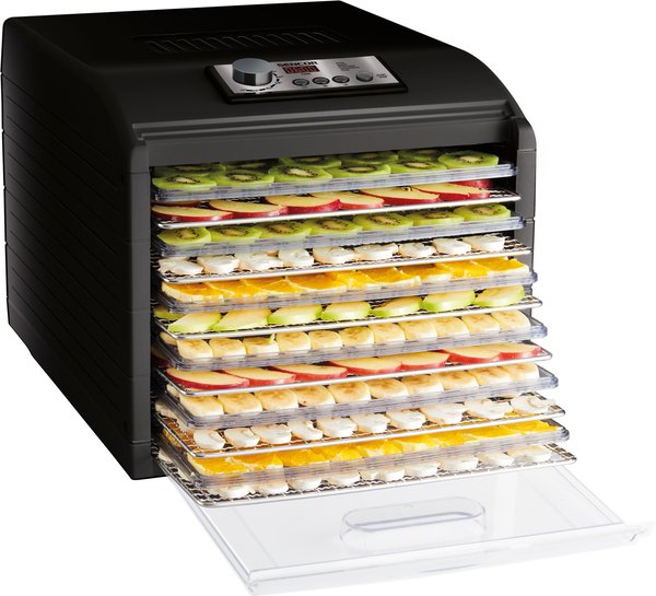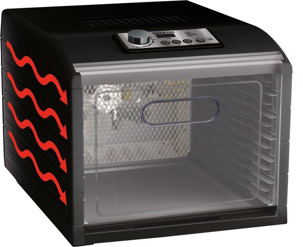 Конструкция дренажных лотков предотвращает образование плесени и оптимизирует циркуляцию воздуха. Встроенный вентилятор диаметром 17 см обеспечивает равномерное обезвоживание на всех уровнях лотков. Прозрачные дверцы и лотки позволяют в любой момент проверить процесс обезвоживания. Технология горизонтального воздушного потока обеспечивает равномерное распределение тепла и устраняет необходимость вращения лотков во время обезвоживания.