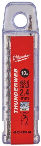 Сверло по металлу Milwaukee Thunderweb HSS-G, 2.4х30х57мм, 10шт (4932430569)
