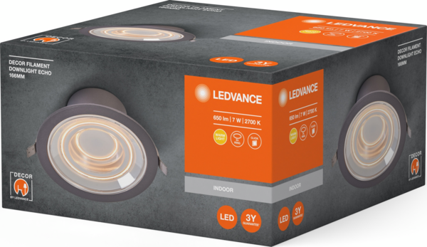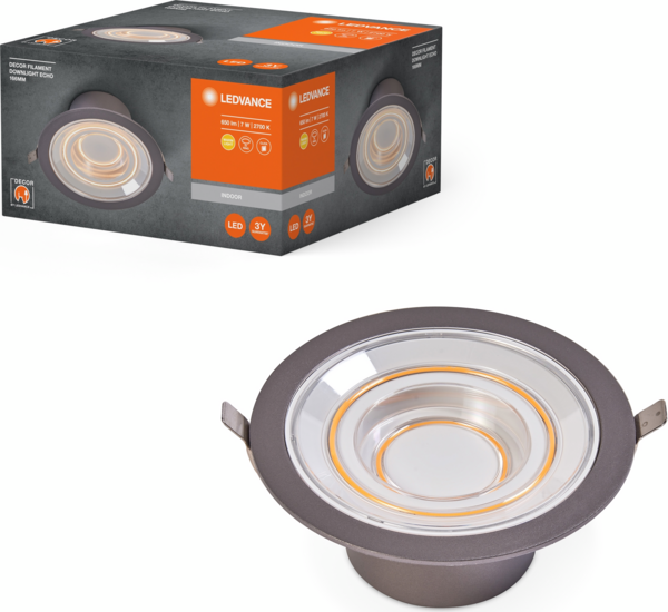 - Светильник даунлайт Ledvance LED 7Вт 650Лм 2700K 166мм Decor Filament Downlight Echo алюминий (4058075833951)