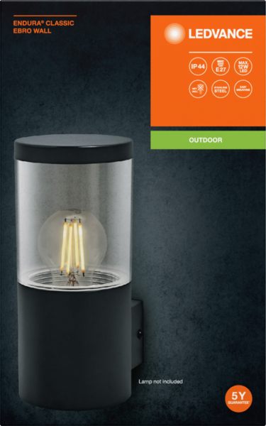 - Светильник Ledvance E27 фасадный IP44 Endura Classic Ebro Wall черный (4058075834989)