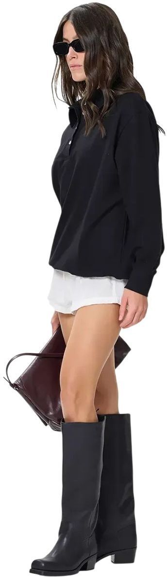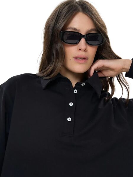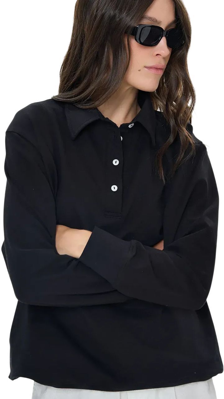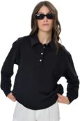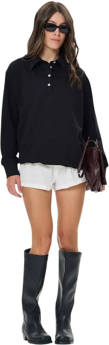 Женский свитшот свободного кроя с приспущенным рукавом - стильное сочетание спортивного комфорта и элегантных деталей. Откладной воротник с планкой на четыре пуговицы придает модели сдержанной классики, а манжеты на рукавах и по низу изделия формируют аккуратный силуэт. Благодаря универсальному дизайну свитшот легко сочетается как с джинсами и брюками, так и с юбками, создавая образы для разных случаев.