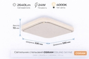 - Светильник Osram Ceiling Skyne 33х33 см, квадратный, 24 Вт, 4000 К (4099854663826)