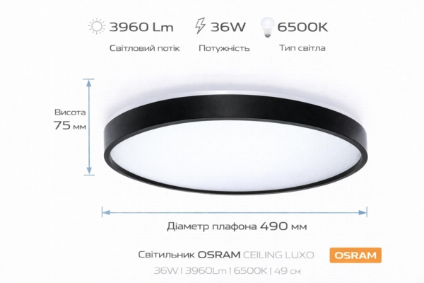 - Светильник Osram Ceiling Luxo 36 Вт, 6500 К, чёрный (4099854651533)