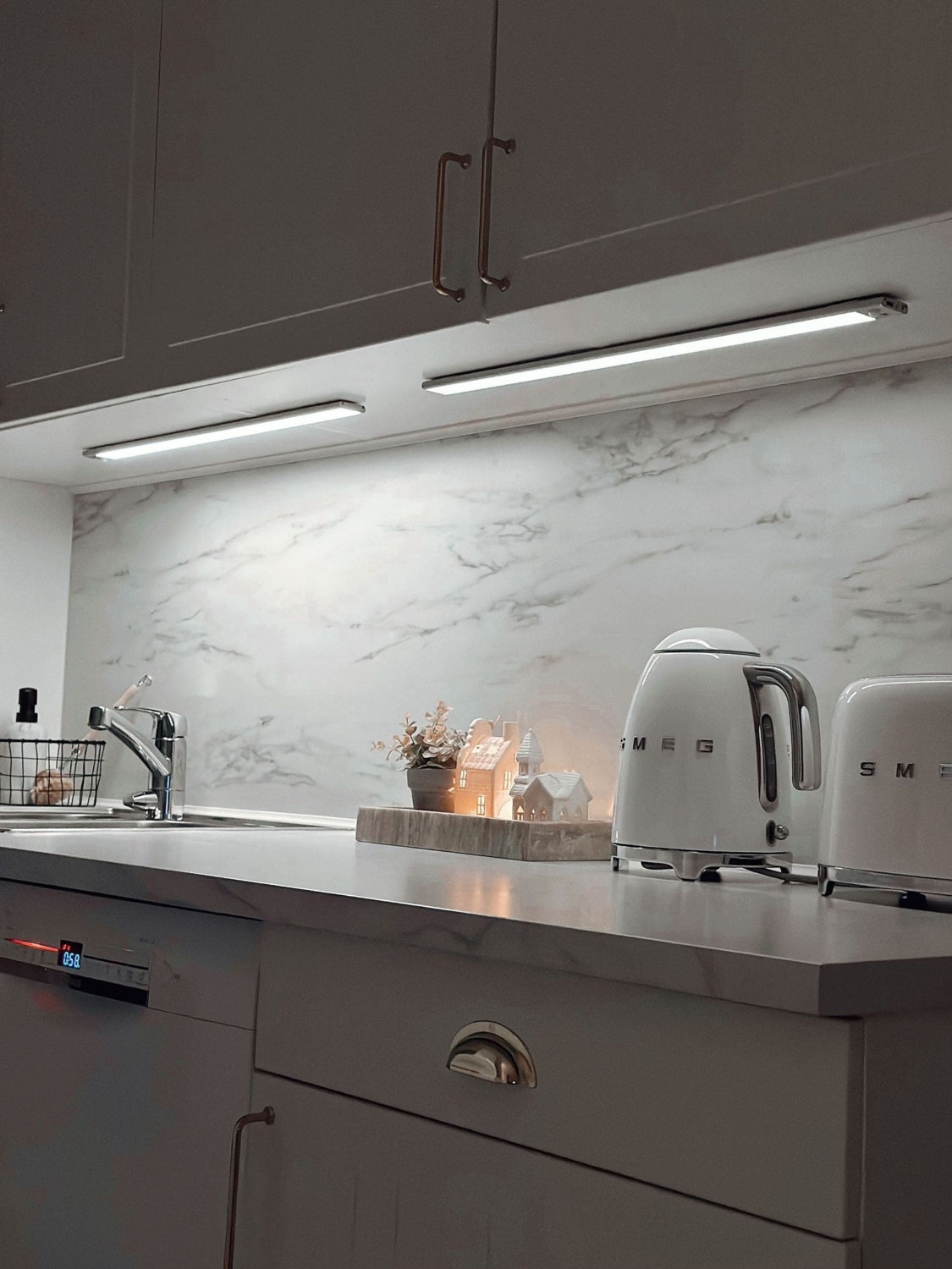 Светильник предназначен для подсветки кухонной мебели, полок, шкафов и вспомогательных зон, где требуется компактный свет без подключения к сети. Тонкий корпус позволяет размещать светильник в узких нишах, под навесными шкафами или внутри мебельных конструкций. Конструкция выполнена из алюминия, что обеспечивает стабильность формы во время ежедневного использования.