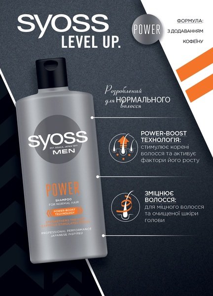 Чистота, свежесть и сила волос — в шампуне Syoss Power с жидким кератином и кофеином. Шампунь основан на натуральных ингредиентах. Высокоэффективная формула с технологией Power-Boost и кофеином стимулирует корни, укрепляет структуру и активизирует рост волос.