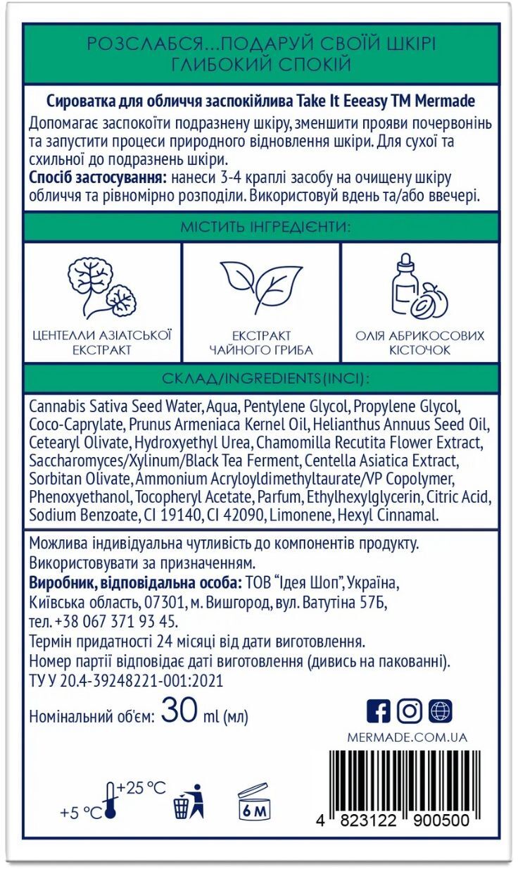 - Сыворотка для лица Mermade Centella & Kombucha Extracts Успокаивающая 30 мл