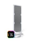 Белый радиатор размером 397 × 120 × 27 мм дополнен RGB-подсветкой с мягким и равномерным сиянием, которое можно синхронизировать с остальными компонентами системы. Такой дизайн не только добавляет элегантности, но и подчеркивает технологичность и аккуратность сборки.