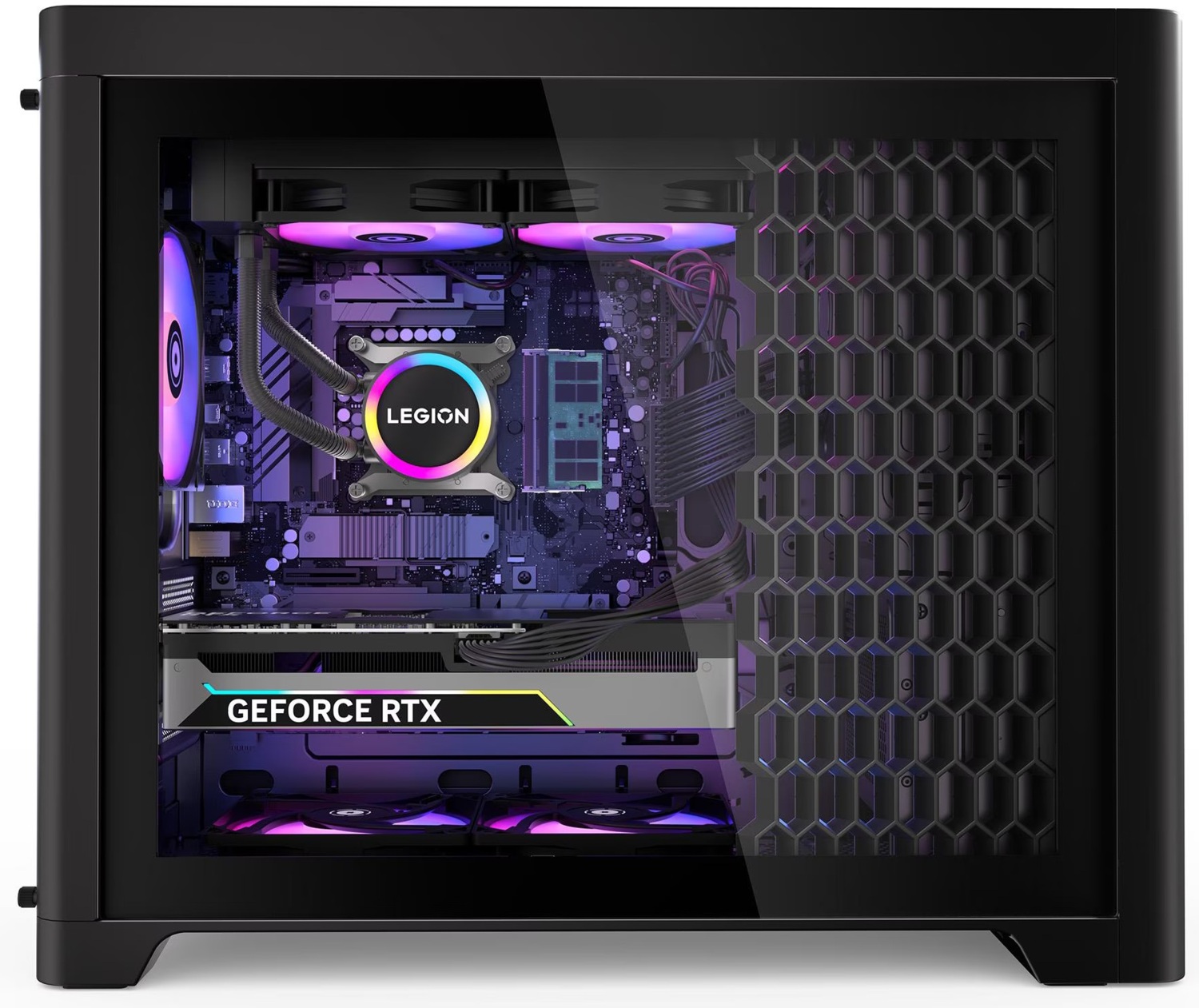 Legion Tower 5i Gen 10 выполнен в стильном и компактном корпусе с удобными интерфейсами ввода-вывода для подключения и потоковой передачи. Прозрачная боковая панель без винтов демонстрирует внутренности системы и легко снимается для апгрейда. Индивидуальная RGB-подсветка добавляет характер каждому игровому сеансу, превращая компьютер в центр твоего игрового пространства.
