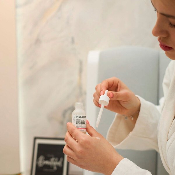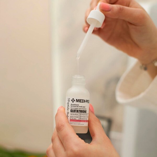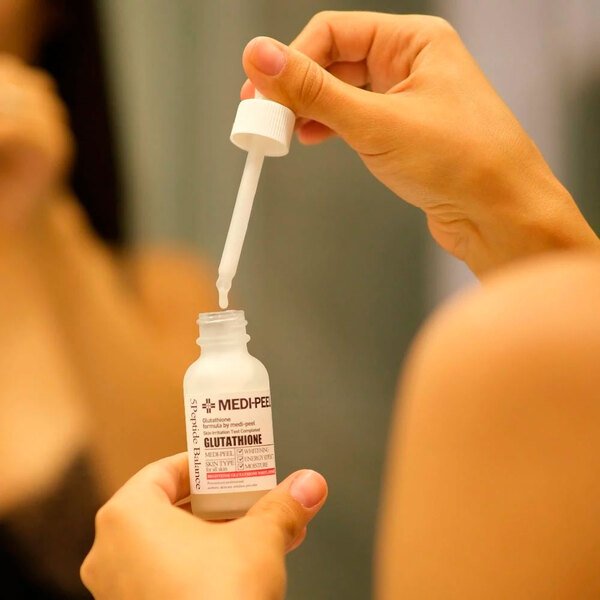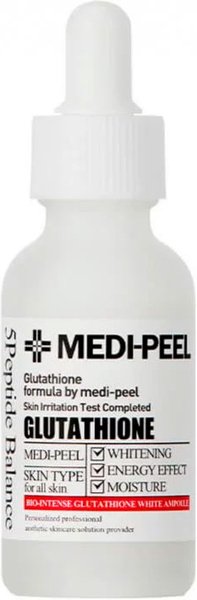 Осветляющая ампульная сыворотка Medi-Peel Bio-Intense Glutathione White Ampoule обогащена глутатионом и эффективно отбеливает кожу, устраняя красноту и выравнивая её тон. Продукт активно борется с пигментацией и следами постакне. Действие сыворотки не ограничивается только поверхностным воздействием на эпидермис: она контролирует синтез меланина, предотвращая новые пигментные пятна и осветляя уже существующие. Интенсивная формула способствует укреплению иммунной системы кожи, обогащает её витаминами, обеспечивая свежий и здоровый вид. Продукт также поддерживает оптимальное увлажнение, борется с сухостью и обеспечивает долгосрочное увлажнение. Ключевым ингредиентом является глутатион (600ppm) — мощный антиоксидант, превосходящий по своей эффективности многие другие средства в отбеливании кожи и снижении уровня меланина. Благодаря высокому содержанию аминокислот глутатион безопасен для применения, выводит свободные радикалы и токсины, способствуя обновлению и очищению кожи. Результатом его действия становится более яркий и свежий цвет лица, уменьшение гиперпигментации и общее осветление тона кожи. Глутатион эффективно устраняет пигментацию, совершенствует кожу, обладает омолаживающими свойствами и укрепляет её структуру. Он также стимулирует синтез витаминов Е и С, обеспечивая защиту клеток от внешних повреждений, и помогает в борьбе с угревой сыпью, возрастными пятнами и другими несовершенствами кожи.