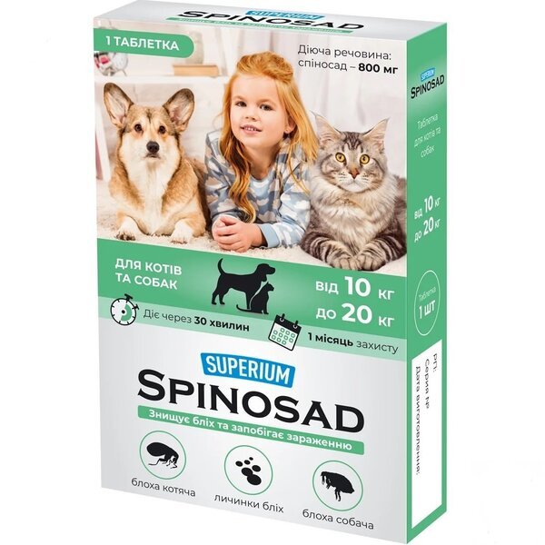 Таблетка от блох SUPERIUM Spinosad для кошек и собак весом 10-20 кг