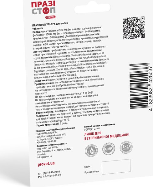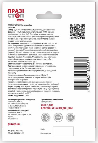 - Таблетки для собак ProVET Празистоп Ультра антигельминтик 2шт