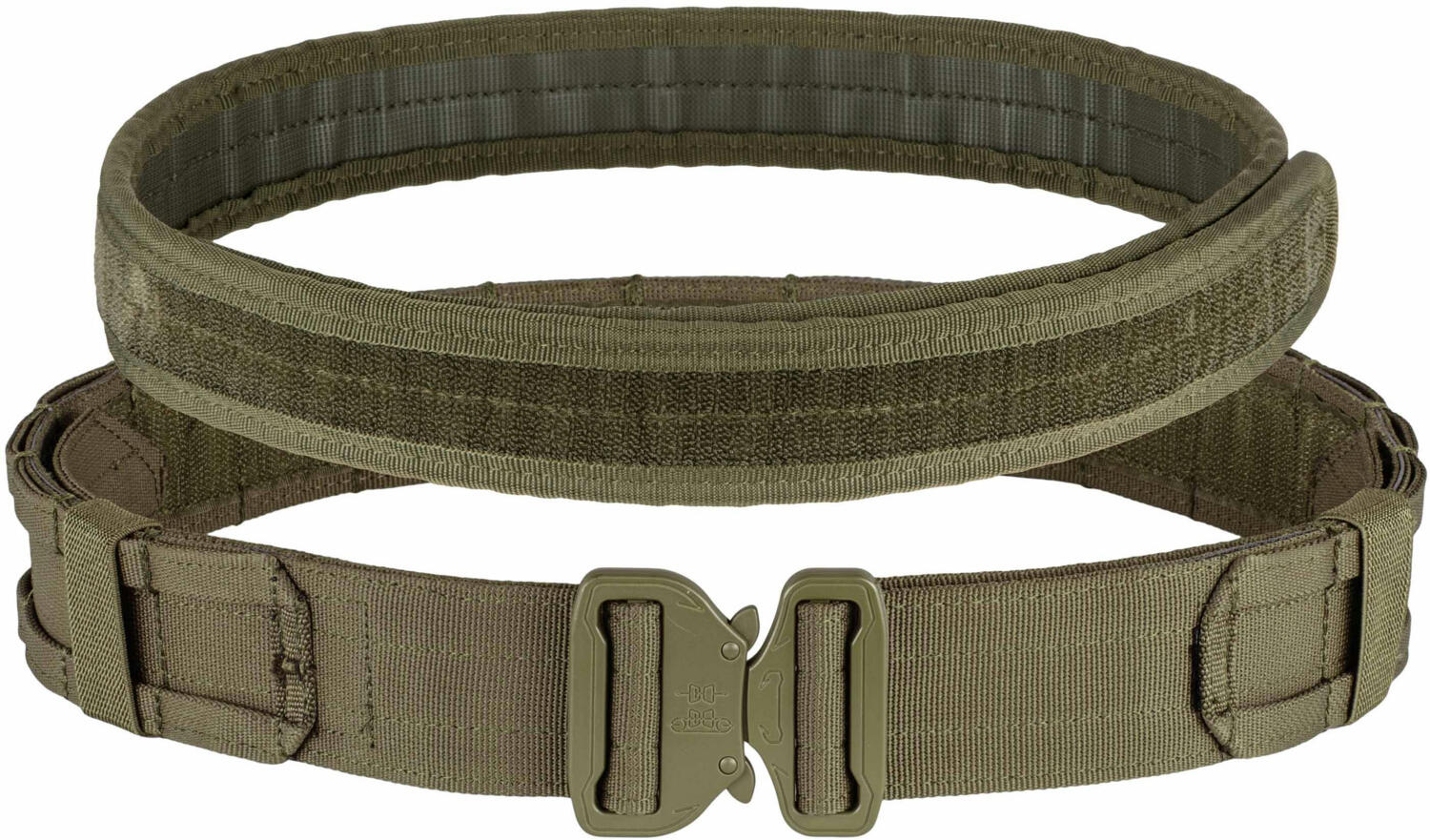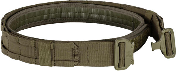 Ремень состоит из двух частей – внутренней и внешней. Внутреннюю часть непосредственно заправляют в брюки, а на другую навешивают подсумки с помощью строп MOLLE. Система MOLLE – это ряды пазов и выступов, которые нужно застегивать для закрепления аксессуаров. Эта часть крепится к первой липкой застежке (по всей длине ремня) и закрывается пряжкой с кнопками. Благодаря возможности регулировки по длине вторую часть ремня можно подстроить под любую статуру. Конструкцией ремня предусмотрена надежная застежка Fastex, благодаря чему изделие комфортное, простое и ни в коем случае случайно не расстегнется.