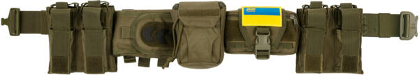 Также к ремню прилагается один подсумок (10×13×7 см), предназначенный для гильз. В верхней его части есть тканевый «воротник» со шнуровой затяжкой. Для надежной защиты дополнительно закрывается клапаном с липкой застежкой. На фронтальной поверхности подсумка есть кармашек на молнии (8 × 9 см). Крепится к ремню одной стропой MOLLE.
