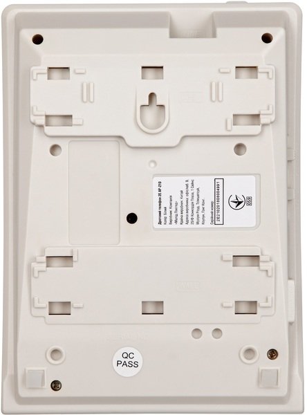 | Возможности | Закрепления на стене, Кнопка «флэш», Отключение микрофона, Переключение тонального / импульсного набора, Повторный вызов последнего, Три уровня громкости звонка: высокий / низкий / выключен, Функция «пауза» набора |