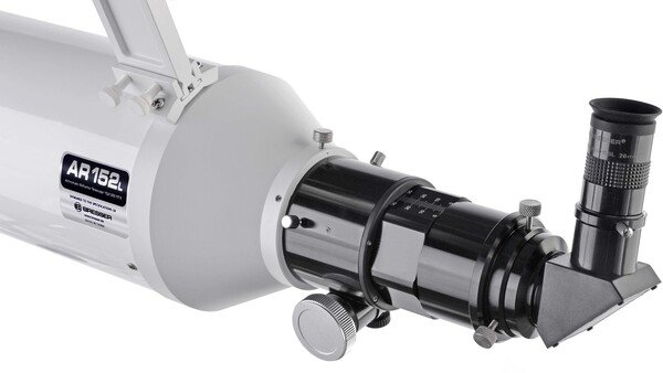 Флагманская линейка телескопов Messier от немецкого производителя Bresser отличается высоким качеством сборки, точностью подгонки оптических элементов и использованием только высококачественных материалов. Все узлы, детали, а также зеркала телескопа выполнены с высокой точностью, что придает наилучшие оптические и эксплуатационные характеристики в своем классе. Телескоп Bresser Messier AR-152L 152/1200 EXOS-2/EQ5 (4752128) является превосходным выбором как для ночных планетарных, так и солнечных наблюдений! Посмотрите на структуру в полосах облаков Юпитера, небольшие ободки и кратеры на поверхности Луны, детали на Марсе, в частности покрытые льдом полярные регионы нашей соседней планеты. Наблюдайте, как спутники Юпитера танцуют вокруг планеты и обнаруживайте зеленоватое свечение Урана далеко за орбитой Сатурна. Сочетание большой диафрагмы и большого фокусного расстояния данная модель телескопа обеспечивает невероятно четкие высококонтрастные изображения, которые каждый раз заново будут поражать вас. Объектив телескопа Bresser Messier AR-152L 152/1200 EXOS-2/EQ5 (4752128) является ахроматом с относительным отверстием 1/8, благодаря чему значительно увеличена светосила. Отсутствие в телескопе центрального экранирования (по сравнению с системой Ньютона) положительно сказывается на контрасте изображения при наблюдениях Луны и деталей дисков планет. Наличие в комплекте фирменного апертурного фильтра позволит наблюдать за Солнцем. Широкое поле зрения штатного окуляра позволит почти полностью увидеть большую Галактику Андромеды с двумя ее спутниками. Очень красивые также и россыпи звезд в скоплениях Млечного Пути. Труба телескопа удобна при транспортировке. Например, телескоп можно смело брать в загородную поездку, туда где небо, по сравнению с городским, темнее и где гораздо подробнее можно рассмотреть тусклые далекие объекты. Самый часто используемый узел в телескопе - это фокусер и важность надежности этого узла переоценить сложно. Одной из последних доработок компании, внедренных в данном телескопе, является новый фокусер Hexafoc с внутренним диаметром 2,5. Благодаря такому решению удалось избежать возможного виньетирования (обрезания) изображения при работе с широкопольными двухдюймовыми окулярами. Кроме того, внимание было уделено улучшению плавности хода, и стабильности самой системы фокусировки. Телескоп оснащен фокусером с посадочным диаметром под окуляры 2" (для использования окуляров стандарта 1,25" в комплекте есть переходник). Это позволяет использовать широкоугольные окуляры, чтобы получить большое поле зрения при наблюдениях протяженных объектов и звездных полей. Кроме того, переходник снабжен резьбой Т2, что позволяет подсоединить с помощью Т2-кольца зеркальный фотоаппарат для съемки в прямом фокусе, при этом дополнительный специальный переходник вовсе не понадобится. Телескоп оснащен оптическим искателем большого диаметра.