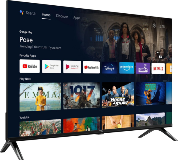 Размер удобный для небольшой комнаты, на тумбе смотрится аккуратно. Картинка чёткая, цвета нормальные, для фильмов и YouTube подходит отлично. Работает на Android TV, всё понятно и просто, приложения ставятся без проблем. Пульт лёгкий и удобный, реагирует быстро. Звук обычный, для кухни или спальни хватает, но можно подключить акустику для лучшего эффекта. Телевизор лёгкий, собирать и подключать легко