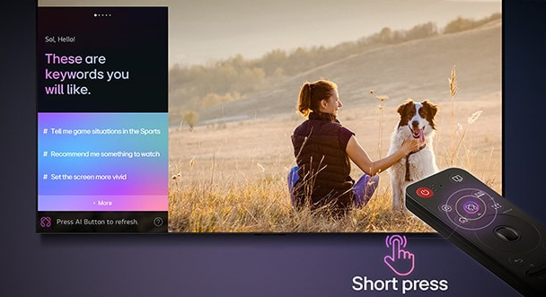 Общайтесь с чат-ботом на базе искусственного интеллекта с помощью пульта AI Magic Remote - решайте любые вопросы: от настроек до устранения неполадок. Искусственный интеллект распознает намерения пользователя и мгновенно предоставляет решение.