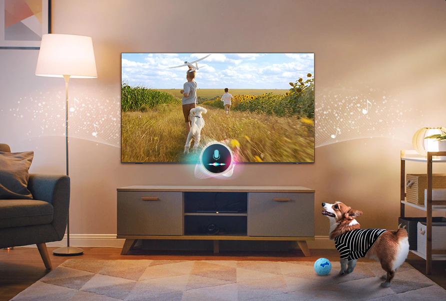 Используйте телевизор в качестве помощника по уходу за домашними животными, когда вы находитесь вне дома. Телевизор может распознавать шумы, например лай, через микрофон, а затем автоматически включать любимую передачу, чтобы успокоить питомца.