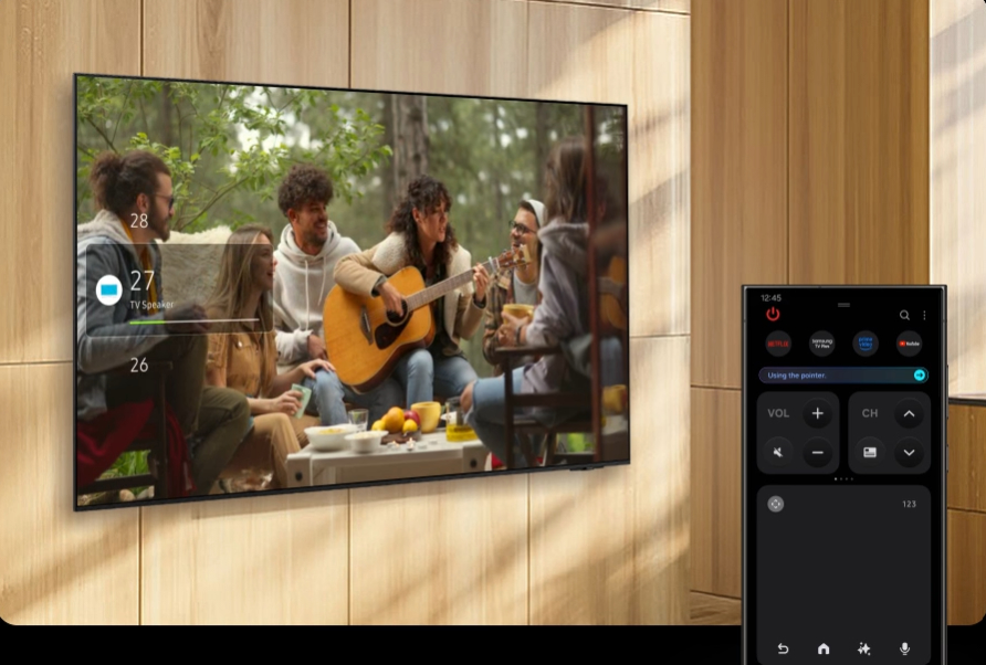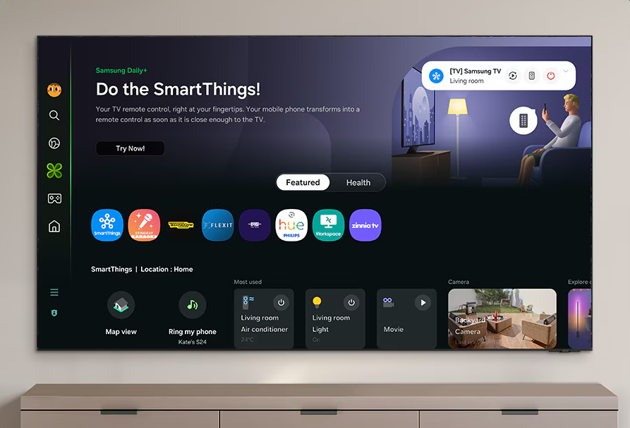 С помощью мобильного приложения SmartThings вы можете получить доступ к ключевым функциям Samsung Tizen TV, таким как медиа, функции, режим окружения и меню. Quick Remote также может выступать в качестве пульта дистанционного управления телевизором, позволяя переключать каналы, регулировать громкость и многое другое прямо с телефона.