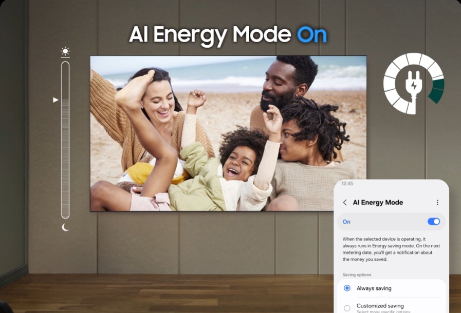 Активируйте режим AI Energy Mode, чтобы легко контролировать потребление энергии. Эта функция автоматически определяет и анализирует окружающий уровень освещенности и поведение пользователя, чтобы при необходимости отрегулировать яркость.