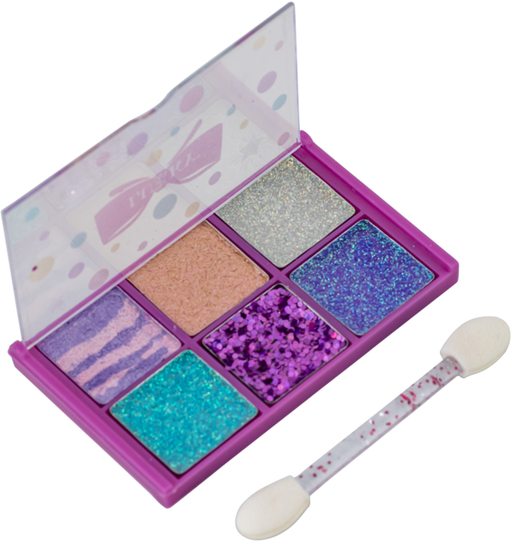 Крем-тени для век с блестками. В палетке 6 ярких цветов! Каждая маленькая красавица найдет свой особый оттенок! Крем-тени с блестками позволят девочке перевоплотиться к празднику или для выступления всего за 5 мин! Набор дополнен двусторонним аппликатором для удобного использования. В составе теней используются только нетоксичные и гипоаллергенные компоненты. Смываются тени обычной водой с мылом, без необходимости использования специальных средств. Детские крем-тени - это отличный способ перевоплотиться в принцессу или фею или просто поднять себе настроение в выходной день без использования взрослой косметики.