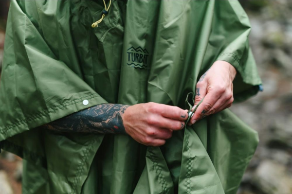 Многофункциональное пончо Molfar от украинского бренда Turbat разработано, чтобы защищать путешественников в путешествиях во время непогоды. Его можно использовать как плащ, надевая поверх рюкзака, а можно - как тент. Легче всего трансформировать пончо в убежище для ночлега или временного накрытия, если у вас есть треккинговые палки.