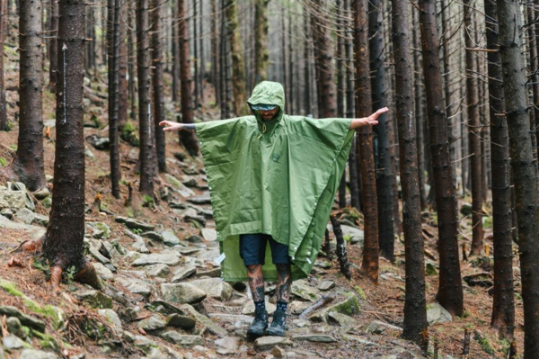 Многофункциональное пончо Molfar от украинского бренда Turbat разработано, чтобы защищать путешественников в путешествиях во время непогоды. Его можно использовать как плащ, надевая поверх рюкзака, а можно - как тент. Легче всего трансформировать пончо в убежище для ночлега или временного накрытия, если у вас есть треккинговые палки.