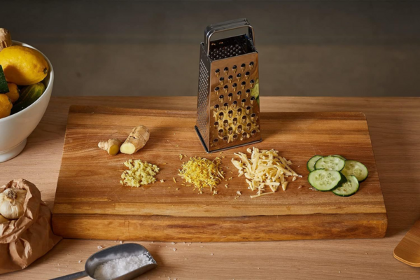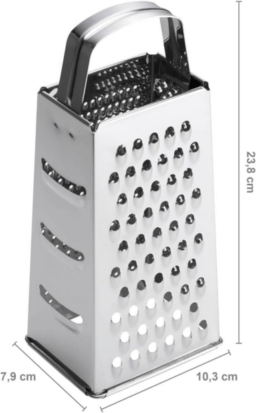 - Четыре стороны: Терка имеет четыре различных поверхности для терки, что позволяет вам выбирать подходящую грубость для каждого продукта. Будь то мелкая терка для сыра или грубая терка для овощей - у вас всегда есть правильный инструмент.