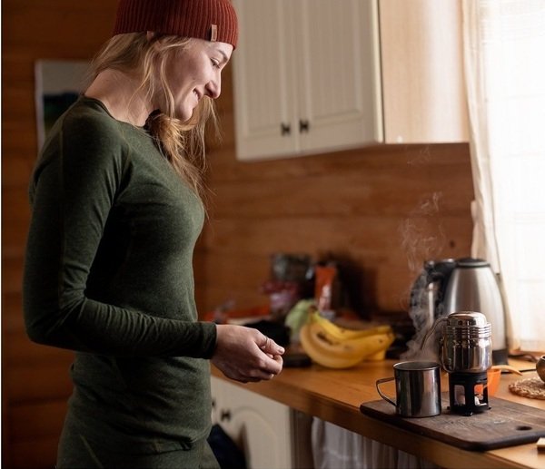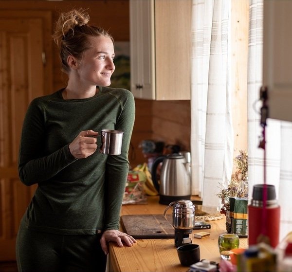 Женская термофутболка приталенного анатомического кроя с длинным рукавом. В ее составе есть шерсть меринос (15%), которая известна своими природными согревающими свойствами. Благодаря пропорции шерсти и полиэстера (15/85), эту вещь комфортно использовать в путешествиях в течение нескольких дней и длительных походах, ведь она устойчива к образованию запаха и быстрее сохнет.