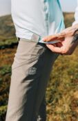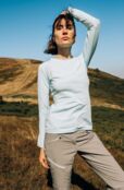 Благодаря легкому и эластичному материалу он эффективно отводит влагу, быстро сохнет и приятен на ощупь. Светлый естественный цвет подходит для городских образов и отражает солнечные лучи во время длительных походов.