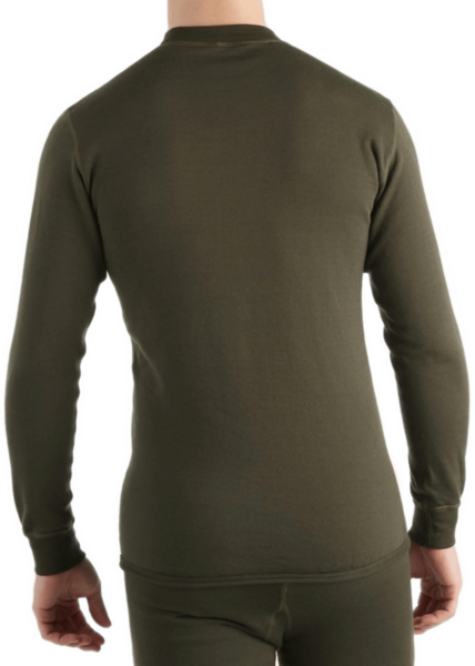 Очень теплая зимняя термокофта от норвежского бренда Aclima. Выполнена из шерсти мериноса с добавлением синтетических волокон, плотность ткани — 230 г/кв.м. Благодаря мягкой махровой изнанке греет лучше, чем самое плотное термобелье обычной вязки. Имеет стандартную посадку и используется как первый, нательный слой в очень холодную погоду. Вырез под горло прикрывает основание шеи, сохраняя тепло, и аккуратно лежит под объемной теплой одеждой.