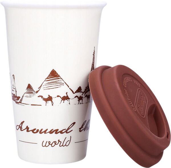 Термокружка Delonghi Globetrotter — идеальное сочетание функциональности, удобства и очаровательного стиля. Основа - высококачественная керамическая чашка, дополненная плотной силиконовой крышкой. Такое сочетание материалов обеспечивает превосходные термоизоляционные свойства, создавая эффект "двойных стенок" и минимизируя потери тепла.