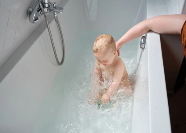 - На шкале есть специальные отметки комфортных температур для купания ребенка.
