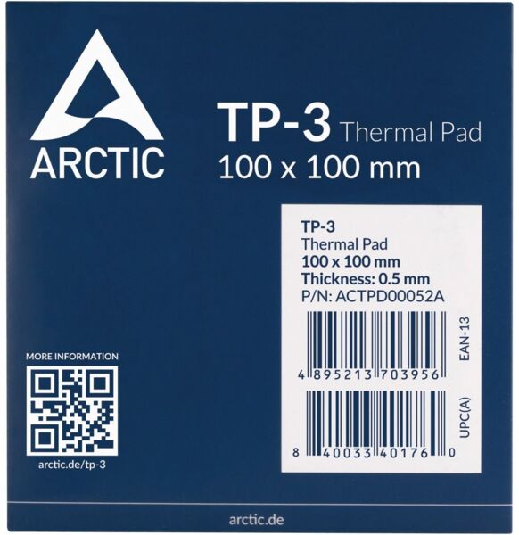 - Термопрокладка ARCTIC Thermal Pad TP-3 100x100x0.5mm (ACTPD00052A)