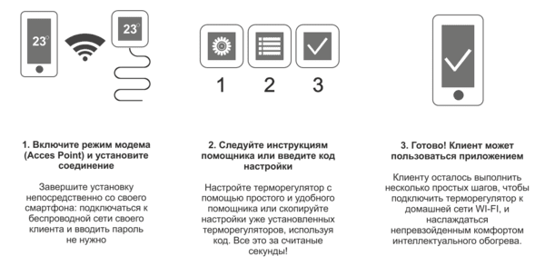 - 10 интеллектуальных устройств (например, смартфон или планшет) может быть подключено к одному термостату;