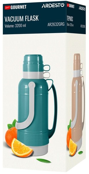 - Термос ARDESTO Gemini Gourmet 3200 мл, пластик, стеклянная колба, серый (AR2632GRE)