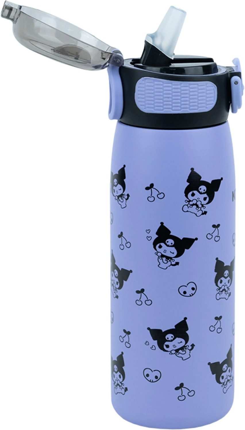 Лицензионный дизайн Kuromi понравится школьникам. Kuromi всегда выделяется среди других – и твой термос тоже. Рисунок с забавной озорницей непременно привлечет внимание и придаст уверенности.