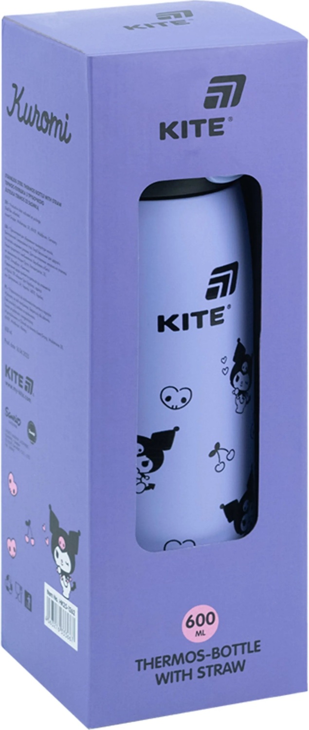 - Термос Kite с трубочкой 600мл, Kuromi, HK25-1262