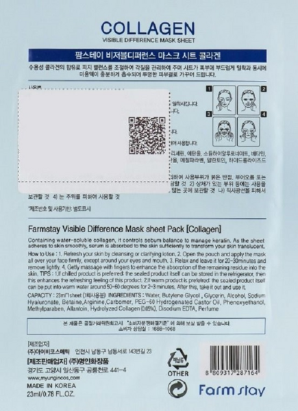 Тканевая маска для лица FarmStay Visible Difference Mask Sheet с коллагеном 23 мл