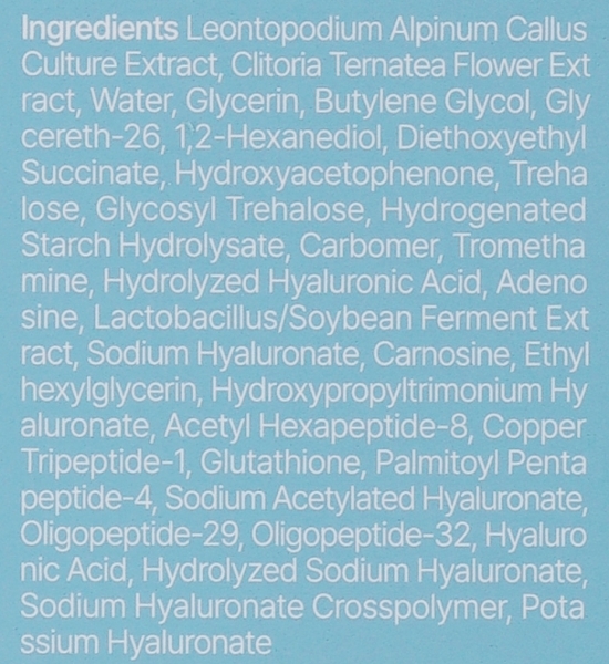 - Экстракт стволовых клеток эдельвейса (29,4%) — повышает упругость и тургор кожи, замедляет разрушение эластина и гиалуроновой кислоты.