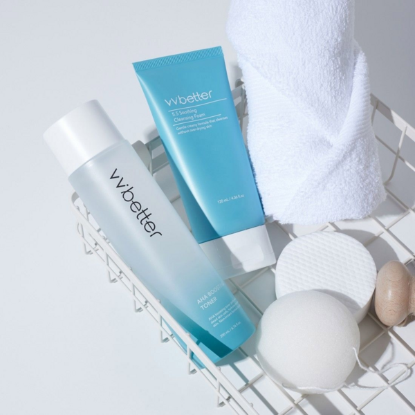 Мягкий тонер Vvbetter AHA Boosting Toner с АНА-кислотами с содержанием гликолевой и молочной кислот нежно отшелушивает и смягчает ороговевший слой эпидермиса, прекрасно увлажняет и придает коже здоровое сияние. Благодаря уровню pH 5.5 не вызывает раздражения и покраснения даже у обладательниц тонкой чувствительной кожи. Активно увлажняет, тонизирует, отшелушивает ороговевшие частички.